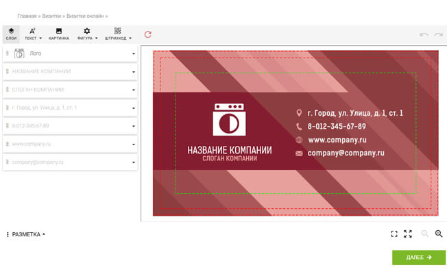 Работа со слоями: можно перенести и настроить текст, значки, фото, логотип.